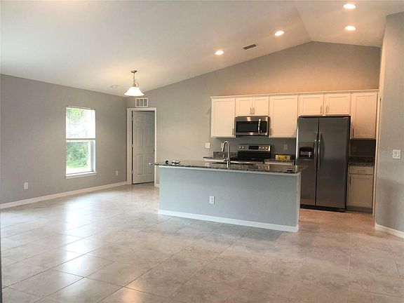 This recently built home from 2021 offers 3 bedrooms plus an office, 2 bathrooms, a 2-car garage, a covered patio, and a paved driveway. Inside, enjoy tiled floors throughout. The kitchen is equipped with stainless steel appliances and a generous kitchen island. Adjacent to the kitchen, the indoor laundry room includes a closet suitable for pantry use. The master bathroom features a walk-in shower with tiled walls.