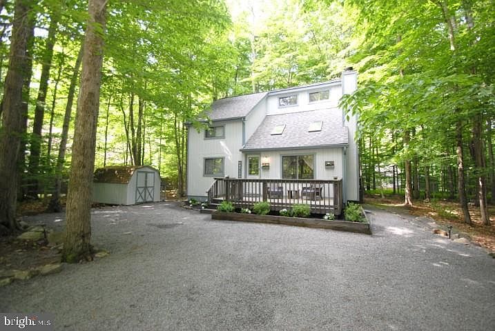 Contemporary style home completely renovated and fully furnished inside and out in the gated, amenity-filled community of Arrowhead ready for you to continuously rent or to make your primary home. This 3 bedroom, 1 and a half bath has a bright open floor plan. Living room has a brick faced propane fireplace, 2 skylights and hardwood laminate flooring. Kitchen has stainless steel appliances, a pantry, and a tile backsplash. Main level has 1 bedroom and a full bath. Upstairs has 2 bedrooms, loft area, and a half bath. AC unit & door locks are wi-fi enabled. Spacious wooded backyard with back deck, shed, and a lighted fire pit area. Private landscaped lot. Lots of parking! Strong rental history and comes fully furnished. New roof, gutters, water heater & skylights! On community sewer! Arrowhead Lake is a gated community with security, 3 heated pools, 2 lakes for fishing/swimming and boating, tennis courts, clubhouse, new lodge, fitness center and much more. Activities included just to mention a few are bonfires, carnival, zumba, water aerobics, swim team, potluck dinners, all you can eat breakfasts and summer camp.