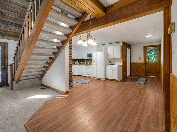 Hidden gem on a private, flat and usable 2+ acre lot. This home features a main floor master suite with 5 piece bath, walk-in shower and large soaking tub, additional bed & bath on the main floor and large loft above. Living room has vaulted cedar ceilings with an open beam design w/wood stove and a heat pump. This property is so beautiful with tons of gardening area, a detached 3 car garage, green house, storage shed & a large entertaining deck. Great location and rare find on Johnson Pt Rd!