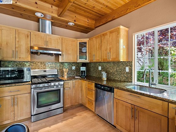 Custom finished private oasis nestled in the Oakland Hills- Immersed in natural light with tree views from window to window, this gorgeous home (and ADU!) is ideal for those seeking refuge from the hustle and bustle- yet close enough to hop on 580/13 to jump back in when needed! The great room includes living/dining and custom kitchen with built in wine rack. It opens up to an expansive balcony or patio for entertaining or relaxing among the trees. Converted storage structure boasts a lounging area, full bathroom as well as prep sink! Custom built outdoor wood smoking oven and separate pizza oven make this a paradise for those foodies who enjoy different styles of cooking. The outdoor entertaining opportunities year round for this home are endless! The touches on this home are like no other property you've seen. Truly one of a kind.