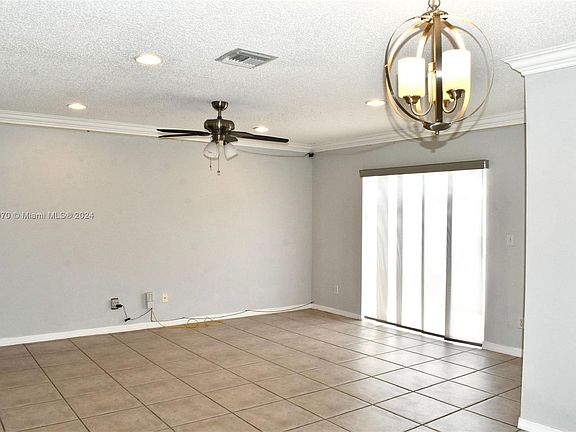 Immaculate corner townhome, with fenced in private courtyard. Located in the desirable, Vizcaya - BAHIA Somerset Community, walking distance to the Charter School. Well-kept home, ceramic tiles downstairs, laminate staircase, ceramic tiles in bedrooms crown moldings throughout, and tastefully painted in cool modern grey. The kitchen has all stainless-steel appliances, double door fridge, and upgraded front load SS washer & dryer, with extra storage in the laundry room & pantry. All bathrooms have been upgraded. Extra shelving in the walk-in closet. One assigned parking along with guest parking. Low HOA and can be rented during 1st year. Full set of accordion hurricane shutters.