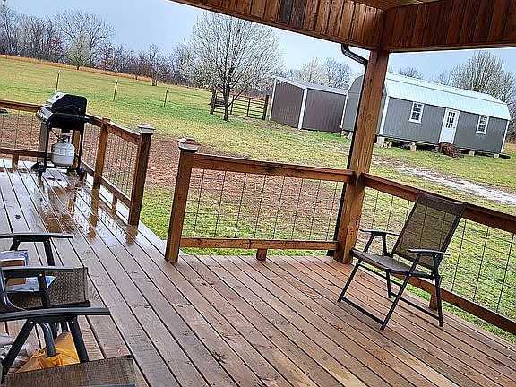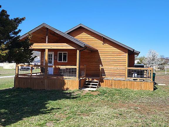 This open and cozy cabin like home feels much bigger than a home of equal size because of the cathedral ceilings in most of the areas. Rustic but modern feel through out. A wrap around porch is welcoming and a great place to entertain. Sits on just shy of 2 acres that is partially fenced. Don't worry about storage because this home comes with a 3 year old 12' x 32' storage shed with loft storage. Also has a loafing shed that is 15' x 30'. A must see!