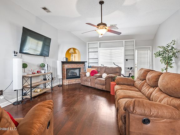 This 3-bed, 2-bath home in Olive Branch offers a split floor plan, spacious living room with fireplace, and a bright eat-in kitchen. The master suite includes a jacuzzi tub, separate shower, and walk-in closet. Outside, enjoy a fenced yard, covered pergola, storage shed, and a bonus room above the garage. Conveniently located near shops, parks, and the expressway perfect for comfortable, everyday living.