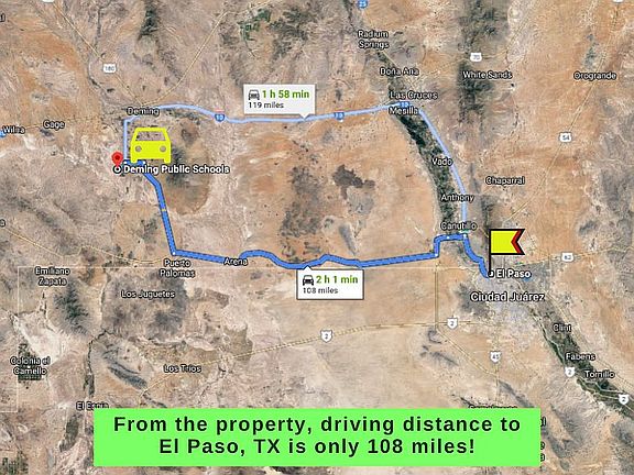 *OWNER FINANCING AVAILABLE, PAYMENTS AS LOW AS $100 for 12 months!!!!* ASK FOR MORE INFORMATION! Gorgeous 0.55-acre lot to seek new adventures in Luna County, New Mexico. This property is nestled just 16.6 miles away from the center of Deming, perfect for anyone who wanted to escape the city and settle in peace. Put up an RV or go camping here! If you love outdoor activities you can visit City of Rocks State Park just north of Deming. What you will see there today measures it's existence in millions of years. Over the last 30 million years, these mysterious rocks were wind-carved and rain worn, sculpted into outlandish streets and houses, temples and towers, some so improbable they could as well be the figments of an exploding dream. What are you waiting for? Call us now to learn more. Pricing Details: Cash purchase price: Owner Finance Price: $100 per month for 12 months at 0% interest (in-house financing, no banks or credit checks) OR Choose a Monthly Payment that fits your budget. Doc Prep Fee: A one-time non-refundable document preparation fee of $249 will be charged to reserve the property and complete all paperwork. State: New Mexico County: Luna County Address: Deming, NM, 88030 APN: 3056150422231 Size: 0.55 Cities: Deming, NM: 16.6 miles from the Property! Puerto Palomas, NM: 48 mins from the Property! Las Cruces, NM: 76.8 miles from the Property! Center GPS: 32.087875, -107.850737 4 Corners: 32.088154, -107.850913 32.087604, -107.850573 32.087603, -107.850925 32.088156, -107.850564 Nearest Landmarks: Valero Gas Station: 15.3 miles from the Property! Deming Intermediate School: 13.8 miles from the Property! Water Tower Park: 17.5 miles from the Property! *OWNER FINANCING AVAILABLE, PAYMENTS AS LOW AS $100 for 12 months!!!!* ASK FOR MORE INFORMATION!