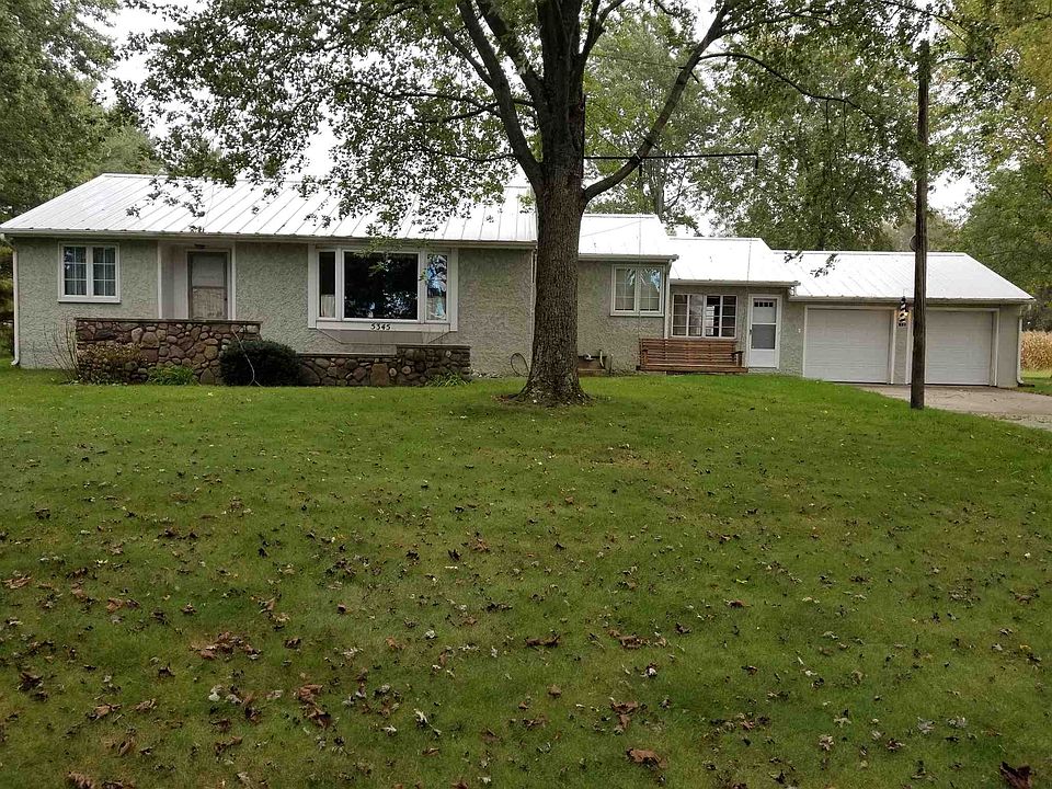 Country ranch on full basement. This 4 bed, 1 bath home sits on a very private 1 acre lot in a wonderful location that has extremely convenient access to I-69, Auburn and Garrett. Features include a 2 car attached garage, large living room with hardwood floors and newer metal roof and windows. Basement is very useable as a recreation area. 24 x40 shop features 2 overhead doors, plumbing for air tools, heat and AC. Mature grapes, apple, and pear trees