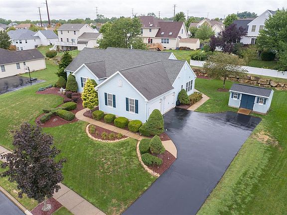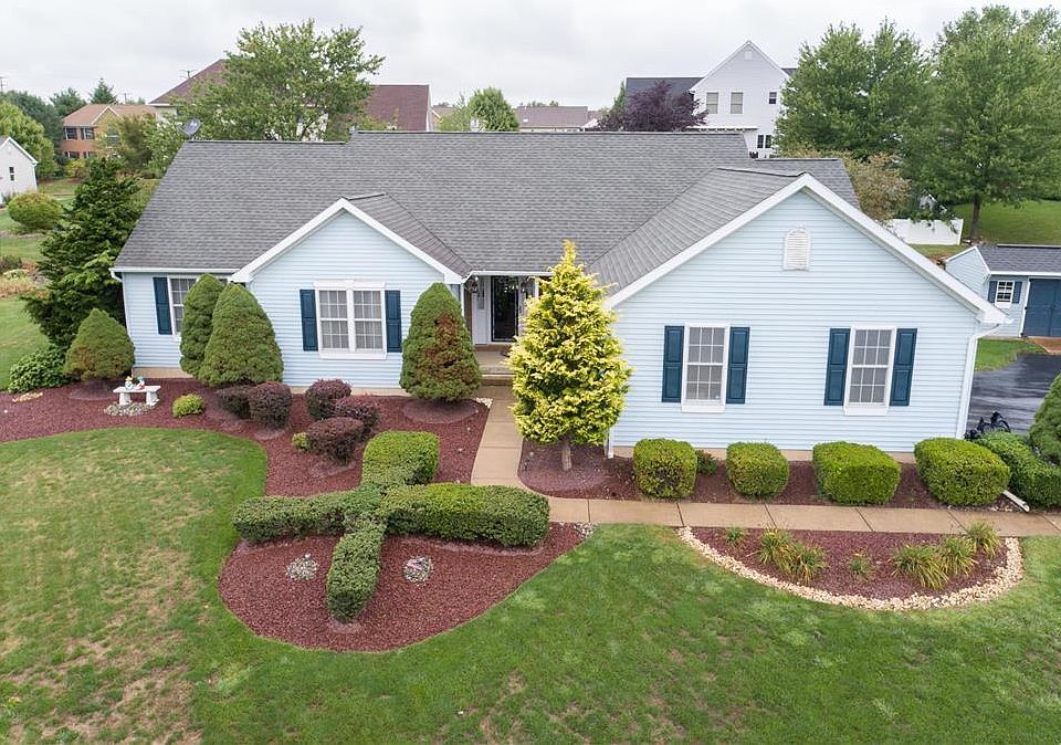 MULTIPLE OFFERS RECEIVED. HIGHEST & BEST DUE BY MON 9/12 @ 12pm. Welcome to this beautiful 3+bedroom ranch home situated in desirable Harvest Fields. 1st floor living at it's finest! Upon entering you are greeted with an open concept, unique ranch layout. The center focal point is the LR w/gas fireplace and sliding door to patio with awning. This opens to the eat in kitchen w/gorgeous cabinets, breakfast bar, stainless appliances and granite countertops. Behind the kitchen you will find the formal DR with ideal placement for entertaining. The primary bedroom has a private ensuite and a walk in closet. Two additional bedrooms with hall bath complete the main level. Amazing well maintained flooring throughout! The lower level is completely finished offering a large entertaining area and two additional rooms which can be utilized as bedrooms, office and much more. 2 car attached garage with additional shed and well manicured lawn with beautiful landscaping!