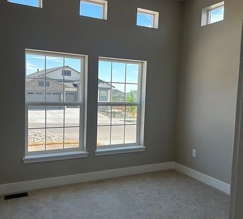 Ready in July. Paradise ranch plan in Wolf Ranch. 5 beds plus study, 4 bath, 3 car garage home. Gourmet kitchen features white cabinets, elegant Terra Sol Quartz countertops, pantry, and Kitchen Aid stainless steel appliances including 36" gas cooktop. Main level study is separated from the great room by double barn doors. The 3-car garage includes a 4' forward extension on the 2 car bay to accommodate longer vehicles or provide additional storage. Walk in from the garage into the owner's entry which hosts a convenient mud bench with cubbies. Barn door separates the master bedroom and bath. The master bath features a dramatic expanded shower, two sinks and linen closet. Laundry room can be conveniently accessed from the master bath. Access the expanded partially covered patio from the breakfast nook and it is perfect for enjoying Colorado virtually year-round. Basement has 1' taller walls and hosts large rec room with wet bar, 2 bedrooms with walk-in closets that share a bath, and additional junior master suite with its own full bath and walk-in closet. Home includes air conditioning, smart home package and passive radon system. Seller incentives available.