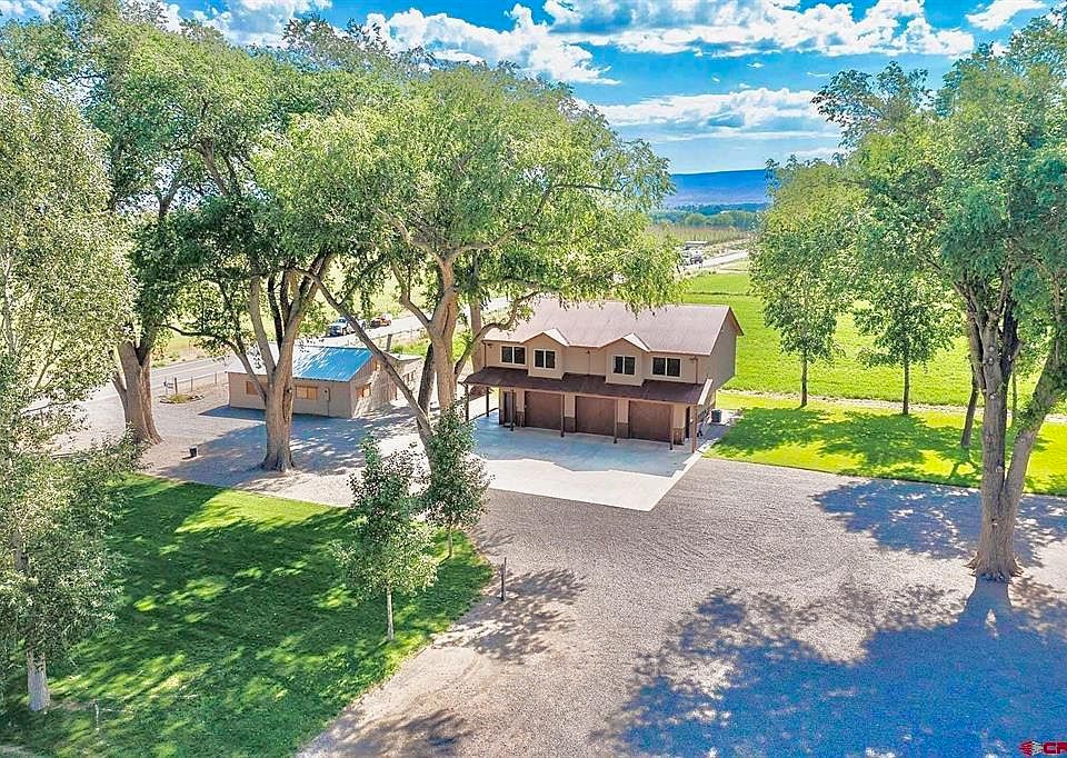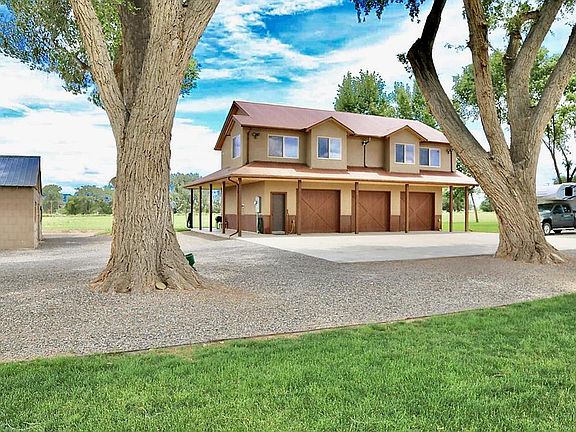 Beautiful Home on 6.45 Irrigated Acres with option to purchase 6.88 adjoining acres! Experience the best of country living—just minutes from town! This gorgeous property offers an incredible setting with a sprawling lawn, mature shade trees, and approximately 4 acres of premium horse hay. The ground level includes a bright and spacious 3-car garage with in-floor heating and a convenient half bath, plus its own private entrance. Upstairs, you’ll find a bright and inviting open-concept living area showcasing vaulted ceilings, three spacious bedrooms, and two well-appointed baths. The kitchen features elegant granite countertops and a gas cooktop. The built-in storage benches add both charm and functionality. The finished attic offers additional flexible living space, perfect for a playroom, or studio. Enjoy modern comfort year-round with in-floor radiant heating throughout and central air conditioning. All appliances are less than two years old. Three outbuildings provide ample storage, and 19.6 shares of irrigation water serve the three subdivision lots. The lawn sprinkler system runs on an automatic timer for easy maintenance. Additional amenities include a built-in speaker system (master bedroom, garage, porch, and living room) and wiring for surround sound. Extraordinary Opportunity: The buyer of Lot 1 will have the first right of refusal to purchase Lot 2—an adjoining 6+ acres of vacant land with a water tap and irrigation—within three months of closing. This means more land can be added to your purchase, offering even greater privacy, space for horses, or room to expand your dream property. Come see this exceptional home and property for yourself—there’s truly so much to love here!