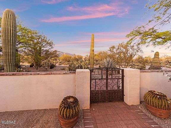 Precisely what you're waiting for. Rarely available - they just don't make 'em like this anymore! The San Luis Burnt Adobe craftsmanship dazzles you w/ unique Tucson charm. Meticulous owners serviced, updated, and/or remodeled nearly everything. Pride of ownership! Guests can dive in to the extra-deep (9') pool or relax by the bubbly Mexican tile fountain, outdoor fireplace, built-in BBQ & grass. High-quality cherrywood cabinets, multi-level island, double-ovens, walk-in pantry, wine fridge, gas Viking range, tons of storage, massive bonus room, mirrored exercise studio, huge laundry room, & water purification system, too. Big walk-ins (2) in the primary BR create the perfect owner's retreat. Privacy, 360 views of the mountains & city lights in Cat. Foothills/Via Entrada). THIS. IS. IT