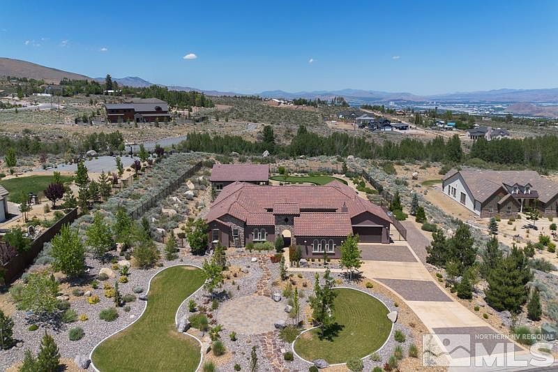 Welcome to your peaceful retreat with beautiful city and mountain views. The main home has one level, 3,957 square feet, 4 bedrooms and an office space with a detached 1,073 square foot casita. This 1.59-acre property, located in a quiet cul-de-sac, offers luxury living with room to roam. Perfect for the outdoor enthusiast, a hiking/mountain biking trail is literally out your back door and within a quick drive to world class skiing, golf, dining, and shopping., The expansive primary bedroom has a spacious bathroom, and two huge and beautiful walk-in closets with ample space for each spouse. The detached guest house was originally used as a retreat and recreation room. It has a room that could be an office space, podcast studio, converted to a bedroom; however, you see fit. Other features of the casita include a half bathroom, steam shower, infrared Finissh sauna, kitchenette, and two sliders. The 4-car garage offers ample space for the car enthusiast or as extra storage. Let your dogs or children run free in the huge backyard and work on your game on the putting green out back. Enjoy nearby amenities within a short drive like the newly remodeled upscale Raley's grocery store, The Hub Coffee Shop, Trendy Tremble Fitness, high end stores and dining at the Summit Mall, and the brand-new Reno Ice indoor rink. Access to Mt. Rose Highway is 1 block away, Mt. Rose Ski Tahoe is 10 miles away, and North Lake Tahoe is 21 miles. An entertainer’s dream; experience luxury living with this gem!