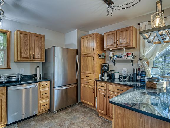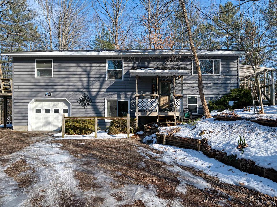 Discover serenity in this charming retreat surrounded by woods with captivating views of Rennie Lake. Featuring 3 bedrooms, 2 baths, and a host of amenities, this home offers comfort and convenience in a stunning natural setting. Enjoy the expansive front deck overlooking Rennie Lake and a private deck off the living room/primary bedroom, perfect for outdoor relaxation. Inside, hardwood floors complement the updated kitchen with newer appliances and elegant black galaxy granite countertops. Recent upgrades include a new roof (2018) and hot water heater (2015), along with updated electrical. Stay cozy with a wood-burning stove and propane heat backup. Choose between a primary bedroom on the lower level or main floor. Conveniently located near State Land, lakes, Peegeo's restaurant, Oleson's grocery store, and Grand Traverse Resort, this home offers the ideal blend of seclusion and accessibility. A one-car garage with an EV outlet adds modern convenience. Escape to this peaceful retreat and embrace lakeside living at its finest. Schedule your showing today and experience the beauty of nature combined with modern comfort.