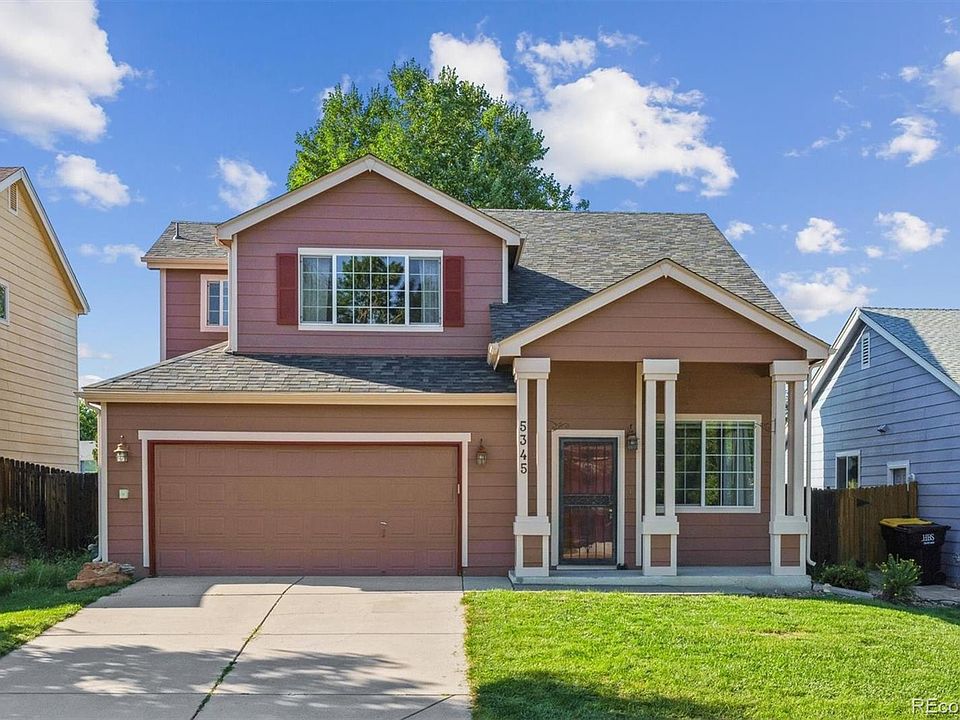 Situated in the sought-after Founders Village community, offering contemporary living and easy access to the best of Castle Rock, this is 5345 Suffolk Circle. A charming front porch and curb appeal greet you and unfold to a spacious and sun-lit floorplan. The formal living area features vaulted ceilings, tile flooring, and a neutral palette that seamlessly connects to the inviting kitchen, dining and family rooms. Radiant heated floors add a cozy touch to the eat-in kitchen and dining area which also boast a new SS dishwasher, a pantry, and ample oak cabinetry. Step out the glass slider to a large Trex deck overlooking a fenced backyard with endless potential. The large level lawn with new sod is great for families and the fenced side yard could be ideal for a dog run or home garden. Retreat to your primary suite with an ensuite 4-piece bath with dual sinks and a large soaking tub. Two secondary bedrooms (one is currently set as a home office), a full bath, and laundry with storage and counter space round out the upper floor. This well-maintained property includes all-new exterior paint (2023), an attached 2-car garage, a crawlspace for added storage, a nest thermostat, and a wifi-enabled Rachio sprinkler system. This home is ideally situated backing to greenspace and is within walking distance of Mitchell Gulch Park and a community disc golf course. With Rock Ridge Elementary, shopping, dining, and Downtown Castle Rock only minutes away, this turn-key home is one not to miss. Ask about assumable VA Loan!