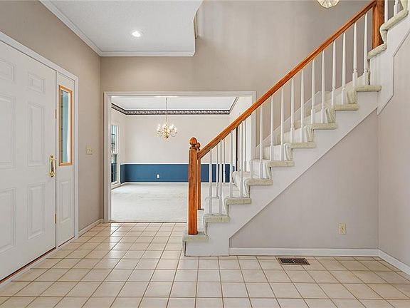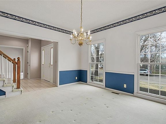 Lovingly cared for home in coveted Carriage Crossing community, just waiting for modern updates. Conveniently located to neighborhood pool, restaurants and shopping. Dramatic 2-story entry, bright breakfast room w/ double height Palladian window, access to patio. Master bedroom suite includes two spacious walk-in closets, a cozy sitting room with fireplace and built-ins, large bathroom w/ double vanities, separate shower and tub. Huge, open unfinished basement w/exterior stairs up to rear yard. In-ground sprinkler system and level partially fenced back yard. HOA fees cover pool, refuse removal, yard waste (March-December), snow removal (in streets), common area maintenance (mowing, flowers in east and west entrances), Christmas lights, social events.