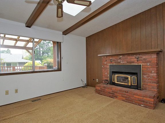 Nice single level home on a corner lot with RV space. Living room, vaulted family room with skylights and a gas FP. Inviting covered deck in a fenced yard. Sprinkler system. Primary bedroom with spacious closet, bath with shower. Main bath with tub, shower, skylight. Gas heat and A/C. Extra large double garage with a new garage door. Convenient location, close to Keizer Station and I-5.