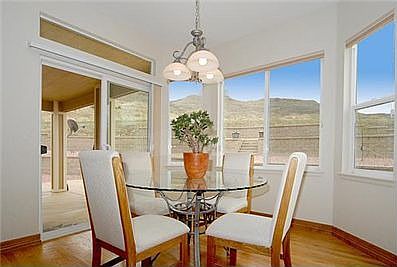 This 3 BR home with loft has much to offer. Backing to open space with views of Tablerock, outdoor activities are just steps away. The enormous patio is sure to give you the outdoor living space you have dreamed of. Large kitchen with 5 burner gas range, double ovens, granite tops, island, stainless appliances, custom tile backsplash, wood cabinetry and more. LR, office, kitchen and DR all have wood floors. The enormous owner's retreat with mountain views has a gas fireplace, private bath with soaking tub, shower, 2 vanities with sinks and a walk in closet. The main level has a formal LR, FAM room, Din rm, office and eat in kitchen. The open floor plan with vaulted ceilings makes entertaining a breeze. Generous windows throughout make the home light and bright. The three-car garage has lots of storage for toys, while the basement has additional storage for everything else. Do not miss out on this unique opportunity for mountain style living in the city.