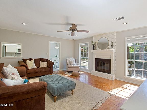 This 4BR/2BA brick home sits in the established neighborhood of Heatherwood in Northeast Jackson. The tidy covered front porch invites you into the home, landing you in the formal living/dining area. This space is vast, with floods of natural light and beautiful parquet wood floors. The kitchen is just off the dining space and has been fully remodeled with new flooring; granite countertops; tiled backsplash; and stainless-steel appliances. The breakfast nook has a large bay window with a beautiful view to start your mornings right. The mudroom shares space with the laundry room and is off the kitchen (you can also access the backyard in this room). Continuing through the breakfast nook leads you into the family room. This space is large, yet cozy and highlighted with a fireplace, built-in bookshelves, crown molding, and has a lovely view of your backyard through two floor-to-ceiling windows.