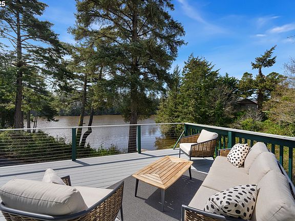 Lakefront Home with Expansive Views on Bradley Lake. Discover the ultimate blend of coastal luxury in this lakefront lodge-style home in prestigious Bradley Lake Estates. Nestled on a south-facing tranquil cul-de-sac and protected lake cove, the home offers breathtaking lake views and effortless access to lake activities, woodland walks and located just a half a mile from the ocean. Step inside and experience a perfect blend of rustic elegance and modern amenities. The artisanal home features timeless craftsmanship with soaring wood-beamed ceilings, solid wood finishes, a striking, floor-to-ceiling fireplace while south-facing windows and multiple skylights bathe the interiors in natural light. The open-concept layout ensures seamless flow, making daily living and entertaining easy for both a couple or an expanded family of guests. The chef’s kitchen features granite countertops, updated custom cabinetry, a Viking induction stove, and an island, while new appliances in the adjacent walk-in pantry and laundry room eases entertaining and daily living convenience. Thoughtful use of space adds to the home’s versatility where both communal and private areas support both work and leisure. Three spacious ensuite bedrooms, each possess stunning lake views, comfortable sitting and sleeping areas, and privacy to enjoy a deep connection to nature. The primary suite features French doors to the deck, his-and-her closets, and a skylit retreat-like ambiance. The upstairs loft suite provides one of the best views of the lake with a closet/nook for tucking-in additional guests. A lower-level private suite with a separate entrance, covered patio, cedar closets, and an updated bath offers flexibility for rental guest or multi-generational living. A full-length deck and protected porches allow for seamless indoor-outdoor living. Schedule your private tour today.