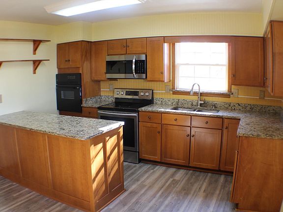 - Kitchen: Solid Surface Ctr, Wood Cabinets, Eat-In, Laminate Floor