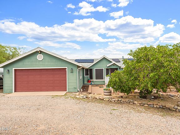 What A lovely home on almost an acre in Hereford, AZ. Relax in the evenings on the Brand new patio deck for you to enjoy the sunsets or morning sunrises. Open floorplan, primary bedroom split plan, vaulted ceilings. Lots of storage cabinets in the garage. Convenient storage shed, producing Pomegranate trees and beautiful corner lot, fully fenced. Step in shower in the master bathroom for handicap accessibility. Solar Panels to be paid off at close of escrow with acceptable offer only.