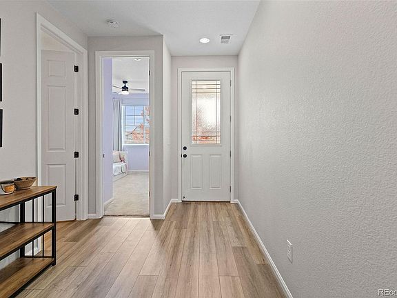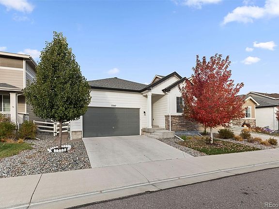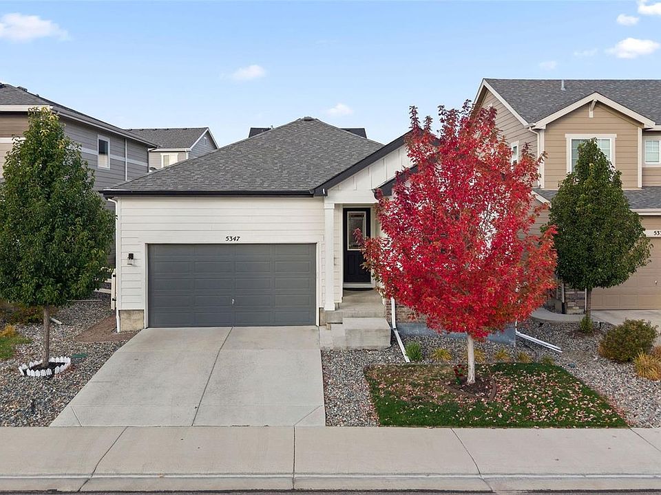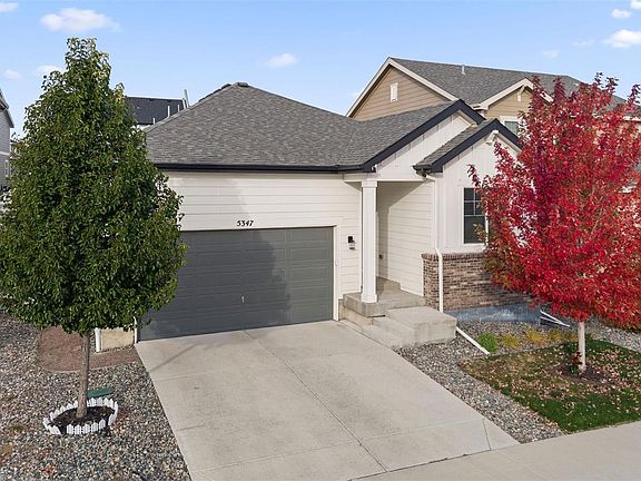 Welcome to 5347 Gray Wolf Ln in beautiful Castle Rock! This thoughtfully designed home combines modern finishes with comfortable living spaces throughout. The inviting glass-insert front door opens to 9ft ceilings and durable LVP flooring that flows seamlessly through the main level. The kitchen features dual-tone cabinetry, upgraded hardware, and all appliances included—ready for move-in convenience. Enjoy open-concept living with a four-panel glass slider leading to the backyard, perfect for entertaining or relaxing outdoors. Cozy up by one of the two built-in fireplaces or retreat to the spacious primary suite featuring a sleek glass-slide shower. Outside, the backyard offers a brick retaining wall lined with mature juniper trees, a concrete patio, and completed landscaping for easy maintenance and year-round enjoyment. This home offers a perfect blend of style, function, and comfort — move-in ready and beautifully maintained!