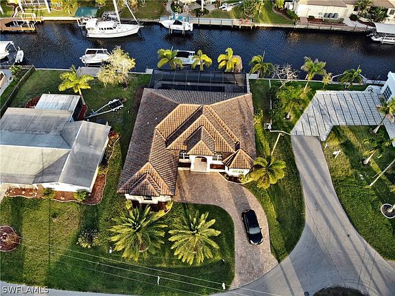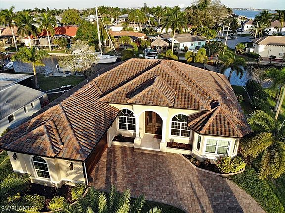 Beautiful Pool/ Spa Home located in the prestigious Yacht Club area with sailboat access. The river can be reached in 5 minutes. Only 1 mile from the Cape Coral Yacht Club & Cape Coral's beach. Home offers formal living & dining room, gorgeous kitchen with granite counter tops (level 5) with island and SS appliances. Enjoy a 42' long heated pool & spa with beach area - no chlorine - aqua link system - all big screen picture windows. This house features high ceilings, wood cabinets, antique french pattern travertine floors, laminate in bedrooms, decorative coffer ceilings with indirect lighting, crown molding, pavers on driveway & pool area, barrel tile roof, custom 12' impact arched mahogany wood entrance door, Lutron electronic system (control your lights, pool and a/c unit from your iPad or phone), oversized 2 car garage - 612 sq ft. Home comes fully equipped with nice furniture! Vacation Rental company available on request. Owner just added a beautiful boat dock with a 14,000 LB Lift and a nice Tiki Hut. House is in a successful vacation rental program.