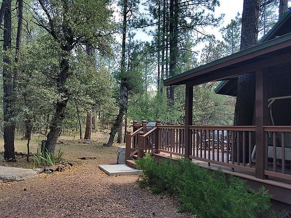 Cabin has newer tile in bathroom and kitchen. New laundry room, rock fireplace with heatolater, two bedrooms with loft, metal roof, and composite deck. Large Shed on property suitable to use as a garage, work room, or storage.