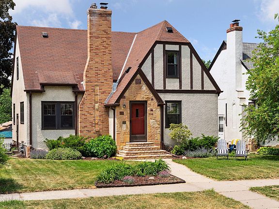 This lovingly updated Tudor home is located on one of the most charming streets in South Minneapolis. Just a few blocks from Minnehaha Creek and Lake Nokomis. This stylish 4 bedroom, 2 bathroom home is move-in ready and features a light and bright living room with a gas fireplace, a beautifully renovated kitchen with white cabinetry, stainless steel appliances, granite counters, subway backsplash and a breakfast bar. Two bedrooms, a full bathroom and the sun room finish off the main floor. Upstairs you will find two bedrooms and a lounge area. The lower level has a newly finished family room with a game area and a 3/4 renovated bath with a walk in shower. Ample storage and laundry complete the lower level. Outside you'll find a travertine stone patio overlooking a beautifully fenced backyard. The absolute perfect spot to enjoy the summer.