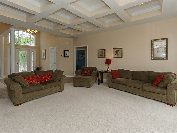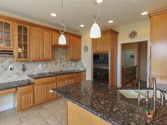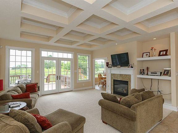 This immaculate custom ranch home offers very nice finishes on a finished basement and desirable lot! The entrance welcomes you to a great room with coffered ceilings, gas fireplace, built-ins and tons of natural light. Kitchen features granite, tile floors, beautiful cabinets and breakfast bar. Enjoy the master suite with double tray ceilings, air bubble tub and tile shower with 5 body sprays! Finished basement offers theater room and family/game room, theater, surround sound, wet bar exercise and storage!