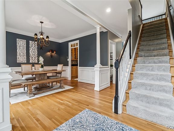 Discover the epitome of luxury and tranquility in this stunning 5-bedroom, 4.5-bathroom home nestled in 'The Preserve' at Foxfire. This 4,802-square-foot masterpiece spans four levels, blending elegant design with functional living spaces. Entertain in the fully finished walk-out basement with a wet bar or prepare gourmet meals in the updated kitchen featuring a spacious island, quartz countertops, and an overflow pantry with an extra refrigerator. The two-story family room, with large windows and a gas fireplace, exudes grandeur. The main level offers an updated half bath, a butler’s pantry, a traditional dining room, and a private study with French doors. The den includes built-in lockers and cabinets, opening to the back porch. Retreat to the luxurious primary suite with a walk-in closet, barn doors, an island, and a primary bathroom boasting a double vanity, free-standing tub, and a large walk-in shower. Additional features include a second-level laundry room, a balcony overlooking the great room, two hall bathrooms, and a fifth bedroom with a sitting area. Outdoors, unwind on the screened-in porch or large deck, overlooking a fenced backyard on a private 2/3-acre wooded lot that backs up to a 100+ acre natural preserve and the Swift Creek Reservoir. Enjoy a lush landscape with a WiFi-enabled smart irrigation system. The community offers multi-generational amenities like sidewalks, playgrounds, parks, planned events, a swimming pool, tennis/pickle-ball court, and sand volleyball area. Residents can explore footpaths to the Swift Creek Reservoir for kayaking and canoeing. Located in the prestigious COSBY High School district, this home combines luxury, nature, and community. Schedule your private tour today and envision your new lifestyle in this remarkable residence. Owner/agent.
