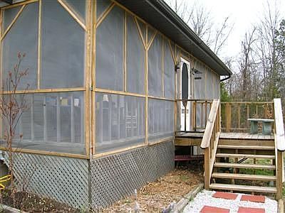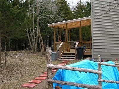 Rustic home on 10 acres. Very private with tons of trees. Conveniently located between Springfield and Bolivar. Only 20 min from Stockton Lake and 5 min from Sac River. Easy drive from Springfield on well maintained roads. Nice, open lodge-style floorplan with cedar floors and pine walls on main level. Master BR on main level also. Zoned heat/air (electric). Home has large screened front porch and covered back patio to watch all the surrounding nature. Fenced area for livestock. Private well and water softner.