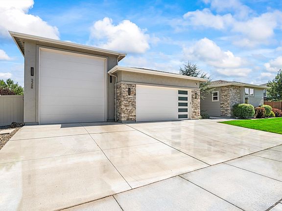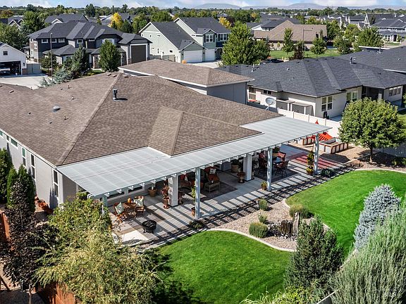 Fall in love with this stunning single-level executive home by Boise Hunter with $200K in upgrades. Be captivated as you walk-in to an open concept floorplan with a split bedroom layout, soaring ceilings, abundant natural light from the floor to ceiling windows for serene views of the professionally designed backyard oasis in full privacy. The chef’s kitchen is equipped with SS appliances, double oven, 5-burner gas stovetop, spacious island, granite countertops, abundant storage, and workspaces. Wake up to garden views from your primary suite and end the day in your spa-like ensuite soaker tub. Productively WFH in the custom-built office with dual workspaces or can serve as a 4th bedroom. Bring your toys for the 3-car garage+insulated 45' RV bay with heating/cooling, epoxy floors, custom cabinetry, workbench, sewer outlet, and central vac. Entertain, lounge, garden in privacy and enjoy the resort-style community amenities with a dip in the infinity pool! This home is immaculate and ready for you!