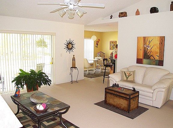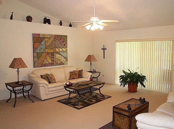 Pride of ownership evident here, immaculately well maintained, please remove shoes when showing. Covered entry, tiled foyer, cathedral ceilings, open, light, & bright. Spacious kitchen with 3 stool breakfast bar and nook. Master bedroom walk-in closet, master bath garden tub and separated tiled shower. Guest bath tub/shower combo. Curbit plant liners all around, garage screened sliders, covered lanai faces very private backyard bermed area with 12 x 16 detached garden tool shed.