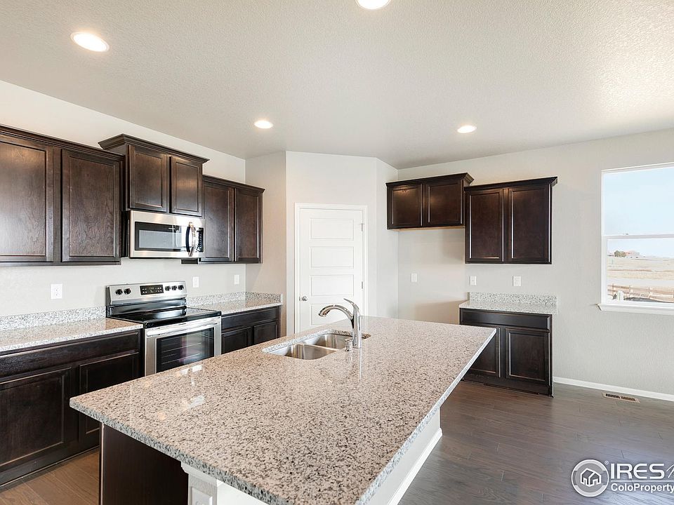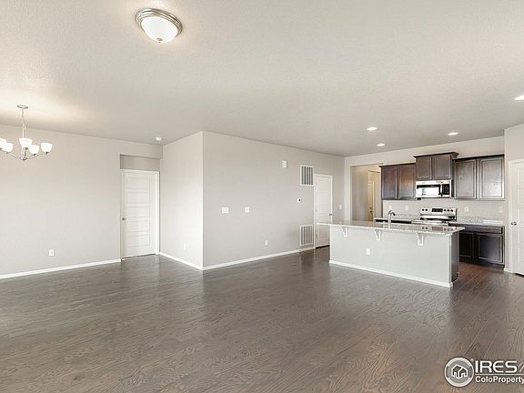 Our Cali floorplan is an open concept floorplan ideal for entertaining! Easy maintenance wood floors flow from the entry throughout the kitchen, dining and living area. The kitchen features a large kitchen island, stainless appliances and an oversized pantry. This home also includes both front & backyard landscaping, irrigation, fencing, back patio, blinds on all operating windows and garage door openers. New home by DR Horton Express will be complete in November!