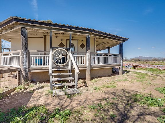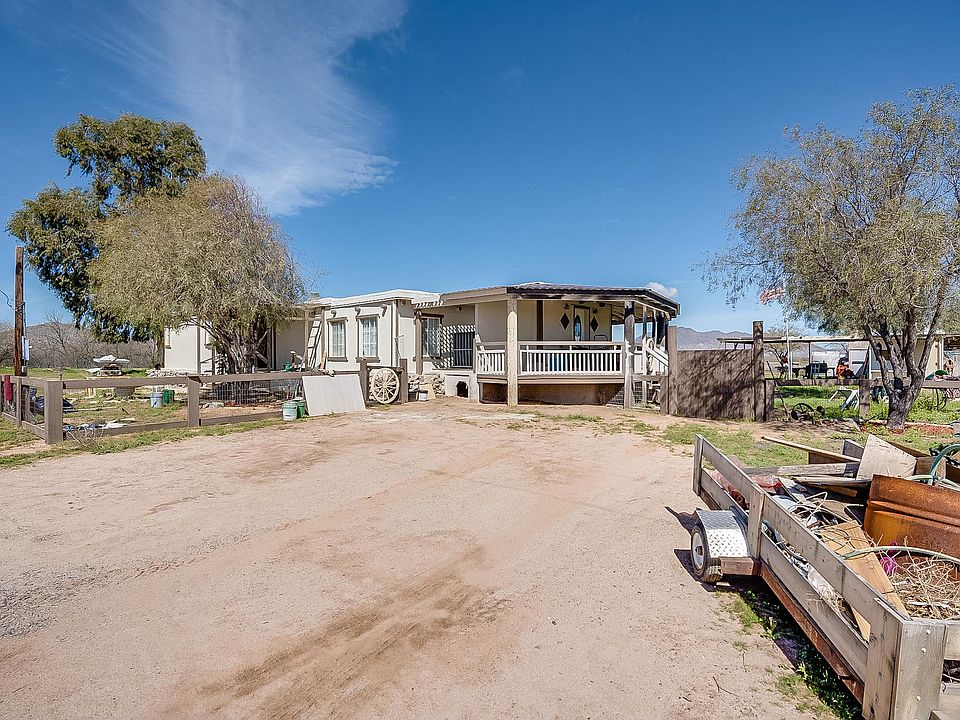 BACK ON MARKET, BUYER COULD NOT PERFORM!*Don't miss out on this lovely 2.5 Corner Lot acre home in the heart of Maricopa w/ shared well! The home has been owned by one family its ENTIRE existence. It boasts beauty with an incredible custom crafted porch that wraps around a large portion of the home, fresh coat of exterior paint, full fence around the property, new Urethan roof, huge patio with a new metal roof, and 6 inch walls! Inside you'll be welcomed by a family room built for entertainment, a split master floor plan and handmade wooden bookcases. The family country kitchen features upgraded floors, new paint, and a large pantry with tons of shelving/ storage! Standing in the center of this property, you truly feel secluded with your 360 degree mountain views paired with the gorgeous