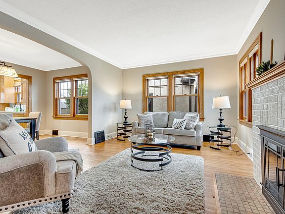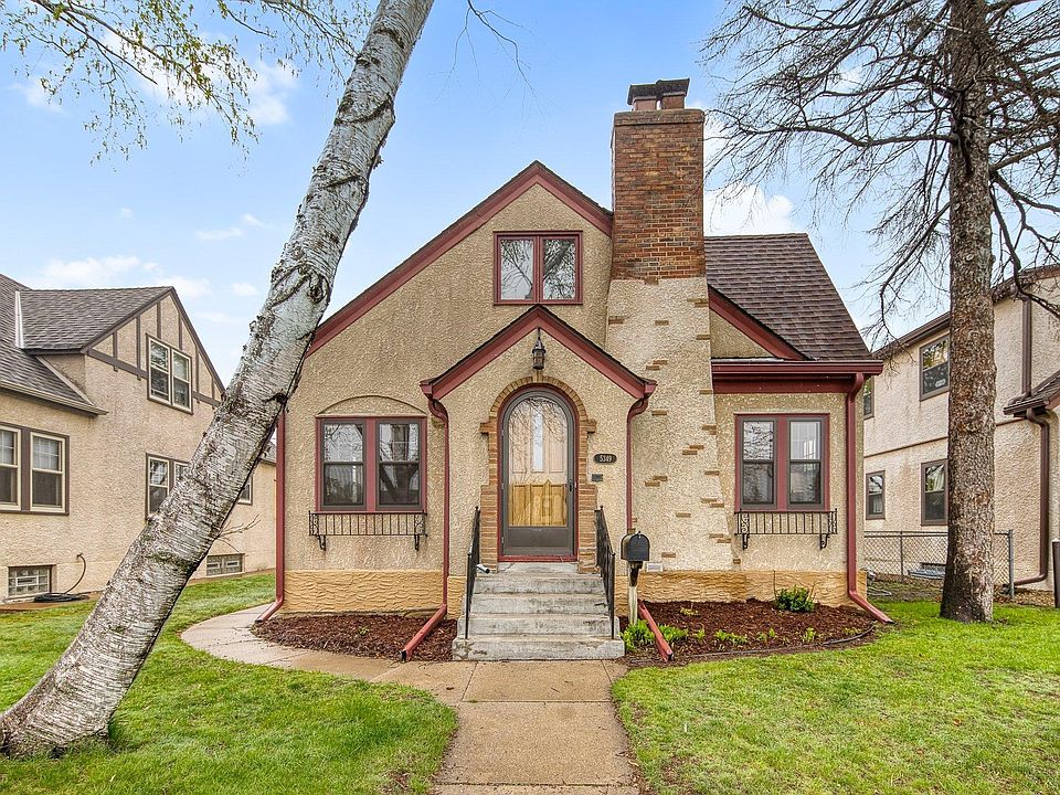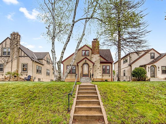 Step into this timeless Tudor residence situated in the sought-after Hale neighborhood, just a few blocks from Lake Nokomis. This meticulously maintained home has been updated with care, preserving its original charm and appeal. The main level features a seamless dining/living area with 10-foot ceilings, a spacious kitchen with a breakfast nook, two large bedrooms with new carpeting, and a renovated full bathroom. Upstairs, you'll find a generous bedroom. The lower level includes a recreation room with new carpeting, a 3/4 bathroom, a potential fourth bedroom (just needing an egress window), ample storage, and a laundry room. This exceptional property is located in a popular area near biking/walking paths, lakes, and dining spots. Welcome to your new home!