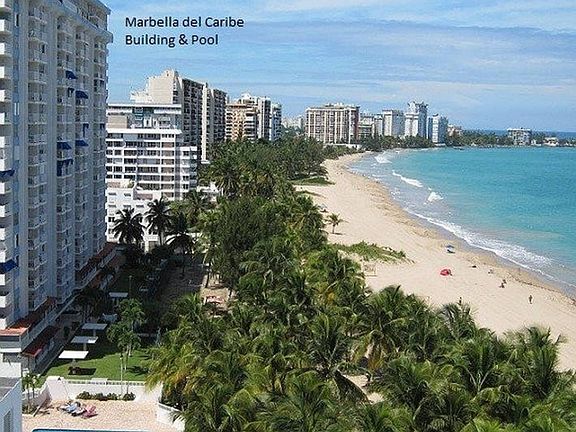 Ocean front and view one Bedroom condo on the 9th floor, in Marbella Del Caribe Este is located in the heart of Isla Verde Beach, minutes from EJU International airport, 15 minutes from Old San Juan. Walking distance from 2 large supermarkets, banks, casinos, high end restaurants such as Ruth's Chris steak house, and many chain restaurants as well as local eatery. Nearby hotels are Water Beach Club, Intercontinental, Ritz Carlton, El San Juan Hotel, Charlie car rental, Enterprise, Dollar, all within walking distance. Walgreen open 24 hours is just across the street where you can find just about everything including food and alcohol. Down the street also CVS pharmacy. Marbella Del Caribe Este is a gated complex with 24 hour security front desk, pools, tennis court, basket ball court, playground, picnic and BBQ area. My condo is move in ready or if using as a rental it's as ready to go, its sold fully furnished with entire inventory of linens, kitchen fully stocked with dishes, pots and pans and more. Remodeled new bathroom, new central air conditioner, hot water tank, microwave/hood range and fridge all replaced 2 years ago. This unit comes with 1 assigned parking space in our gated garage.