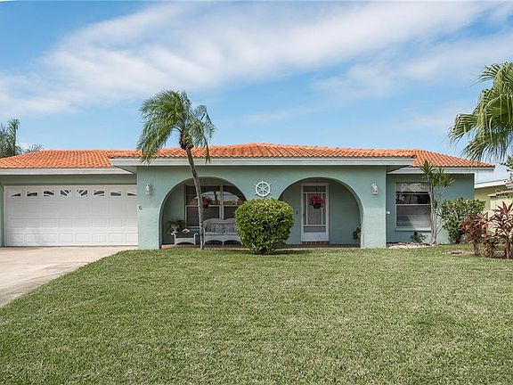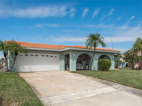 70" of waterfront on a wide and deep sailboat water canal. 5 minutes to the open Gulf. 2 bedroom, 2 bathroom, 2 car garage. Commercial grade vinyl plank wood flooring throughout. Master bedroom en suite has a walk in closet. The bathroom door leads out to the back patio. Crown molding , beautiful wood trimmed windows and architectural baseboards. Open floor plan with water views from every room. Mature landscaping, fenced yard, 10 lb boat lift and floating dock. Water and electrical available at dock. Sprinkler system has never been used and is being sold as is. White floating dock does not convey.