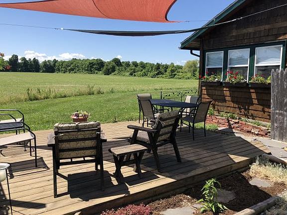 Retreat to the country without giving up amenities. Cottage style cozy home with 8 foot ceilings, open concept living, spacious 1 bedroom with walk in closet and all the amenities for genteel country living with some seasonal lake views. A mere 1.7 miles to the village of Trumansburg and situated within a stones throw of the Black Diamond trail and Taughannock Falls upper trail. Gaze out over your 16 acres of tillable land, while you relax on the platform deck, surrounded by nature. Privacy fencing, gas heating stove, new electric mini splits, hardwood floors, slate patio, and storage shed.
