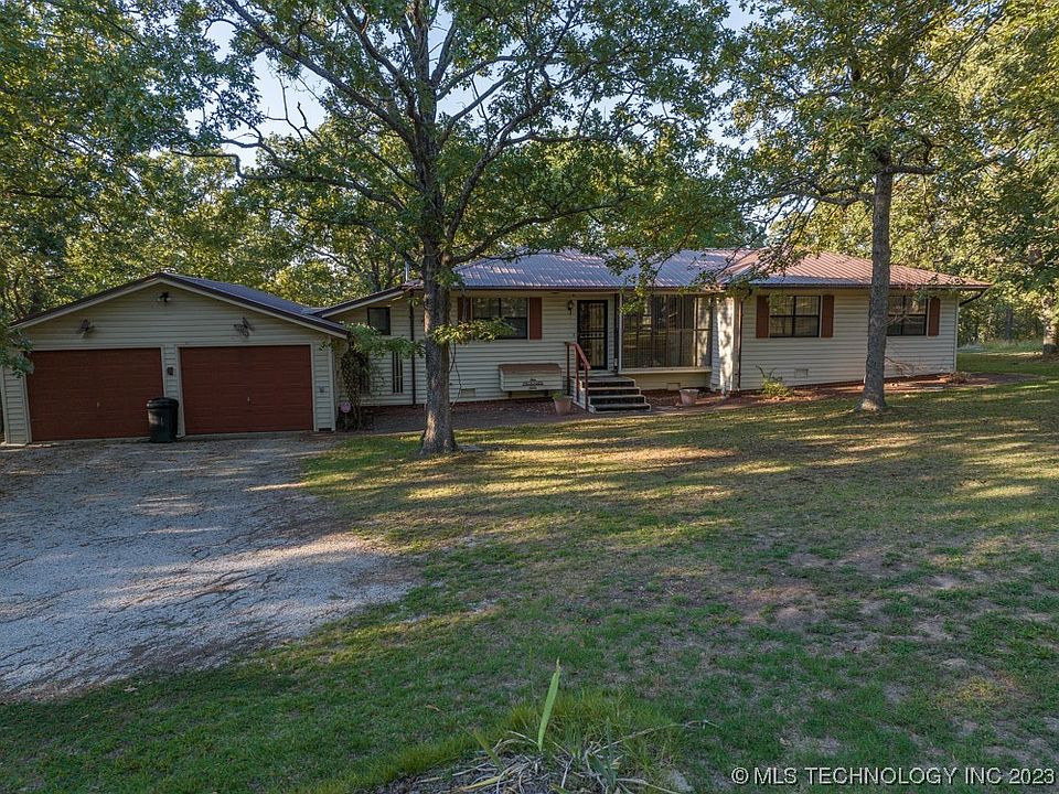 Looking for a secluded retreat? Space for the family? Do you enjoy the great outdoors? This is the one! This home & 20 acres is 98% wooded, has a wet weather creek on the back portion of the property & endless wildlife at your backdoor. None of the property is located in the floodplain. This 3 bed 2 bath home has had some updates over the years. HW tank, furnace & metal roof are believed to have been replaced at some point during ownership-age unknown. The oversized 2 car garage has a work area/concrete floors/110 electric. Large storage building remains. Sells as-is.