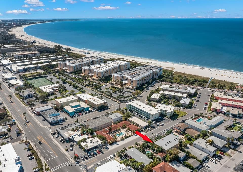 Excellent opportunity to own your beach retreat for a reasonable price! This light and bright first floor corner unit comes turn key and is just steps from St Pete Beach, Trip Advisors #1 beach in the nation (2021). This condo is ideally located near historic Corey Ave shops and restaurants and minutes to St Petersburg, the interstate and 15 minutes to downtown St Pete. This unit features updated cabinetry with modern shaker style doors. The kitchen offers lots of cabinetry and breakfast bar. The bathroom also offers lots of updated cabinetry and storage. This popular open floor plan also features a spacious primary suite and low maintenance tile flooring throughout. This is a perfect weekend get a-away or investment rental with 1 month minimum rental period. Life is now...buy the beach retreat!
