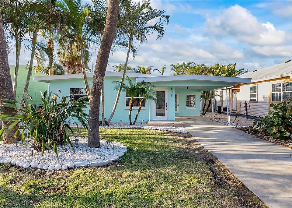 Have you been looking for a tropical mid century beach house with a pool? Look no further! This solid block construction home, 3 bedroom, one bath,was just renovated and is a short walk to the sugar sands and teal blue gulf waters of of Upham Beach. Recent upgrades are new ceramic tile floors throughout, new bathroom with marble and ceramic tile, new kitchen with quartz countertops, stainless steel Samsung appliances, new hardwood cabinets, LED lighting throughout, new fans, closet doors, matte black hardware throughout the home. There is a new laundry room with custom cabinets, folding area, samsung slimline washer / dryer, and new tankless hot water heater. The rear of the house has a large room with two large closets that can be used as a 3rd bedroom or family room with office and bar area. The beautiful spacious yard has a new patio, new vinyl fence, new tropical landscaping with crushed shell border and an in ground pool for the best day and night time relaxation and entertaining. You step outside feel the breeze and hear margaritaville playing in your head, all you need is a shaker of salt! This home is located in one of the most convenient walking neighborhoods on the beach. So many great restaurants, bars, and shops are within 2-3 blocks from the home. Mastry's Brewery is one block away! Walk to Corey Ave street market every Sunday just around the corner!