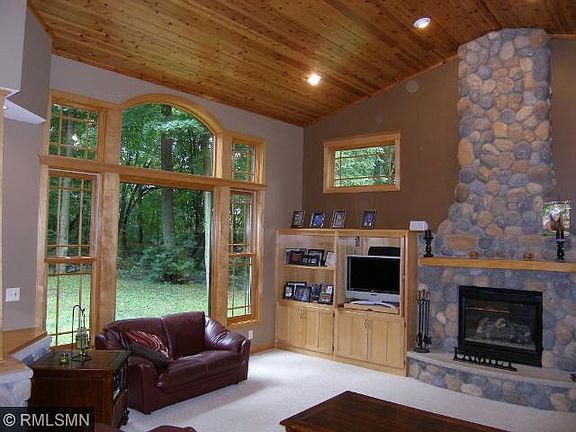 Custom home on private 6.2 acres! Exceptional features incl lg windows, pillars, stone fireplace, 2-story family rm, spacious kitchen, main lvl master. 44x29 heated, insul gar, 2-9' garage doors, huge deck w/outdoor fireplace, screen porch.