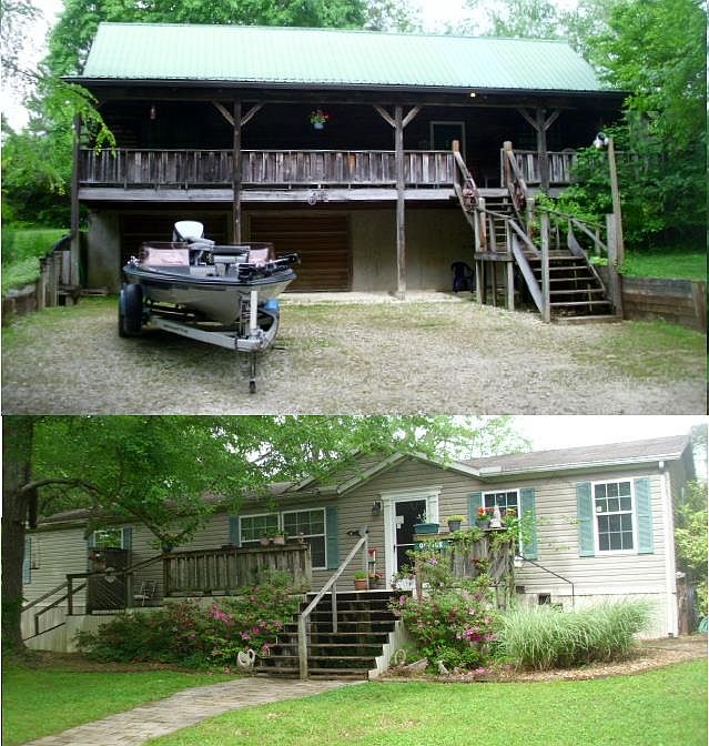 2 beautiful homes at Kentucky Lake in NW Tenn. 2.81 acres. First time on market in 27 yrs. Owners are retiring. Unique unrestricted property with 2 separate homes plus smaller cabins. Just minutes from Paris Landing State Park. Currently set up as a lodging business since 1993. Modern log house plus cabins are available for rent. On the beautifully landscaped property are 2 garages, 2 sheds, flower gardens, swimming pool, hot tub and Kentucky Lake is just a few hundred feet away! Quiet, safe, at the end of road, across from National Wildlife Refuge where song birds and wildlife abound! See Feature Sheet in photo array for more details.