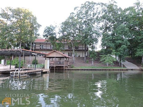845+/- feet of year round water with retaining wall and 2 bay covered floating dock! This home has everything to offer for enjoying lake life! 4 Bedrooms all have private baths. Hardwood floors throughout upper with tile in bathrooms. Great room, kitchen and master face the lake with French doors opening to a covered porch across the back to enjoy the beauty of this waterfront home. Master bath has separate shower and tub with his/her vanities. Guest bedroom has private bath with shower. Custom cabinets in kitchen with stainless appliances and tiled backsplash. Half bath on main level off entry. Laundry room on main level with storage and a sink. 2 car garage has entry door into laundry room. Fully tiled finished basement has great room facing the lake with