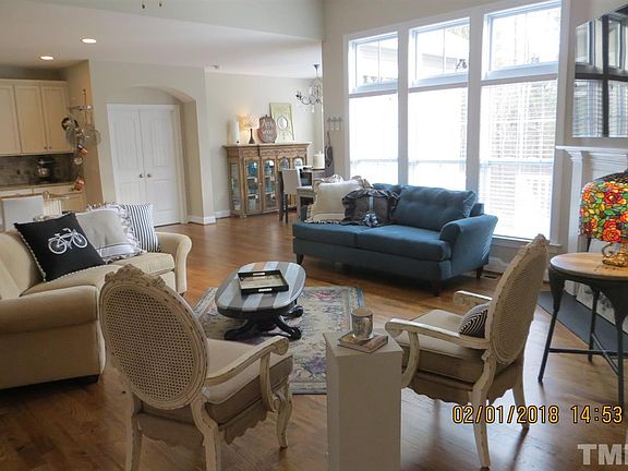 Rare opportunity: 4 BR, almost 2500 sq ft TRUE One-Story Ranch with Super "Open Floor plan" nestled in the woods at the end of a quiet cul-de-sac. Site-finished hardwoods all except BR's. Beautiful Archways, LR w/ corner FP open to kit & brkfst overlooking private wooded lot. Large Island w/ eat-at Bar highlights beautiful kitch w/ granite, stainless appl's, gas range & gorgeous stone backsplash. Luxurious Owner's Suite separated from 3 guest BR's. Tankless WH, Garage w/ dedicated HVAC.