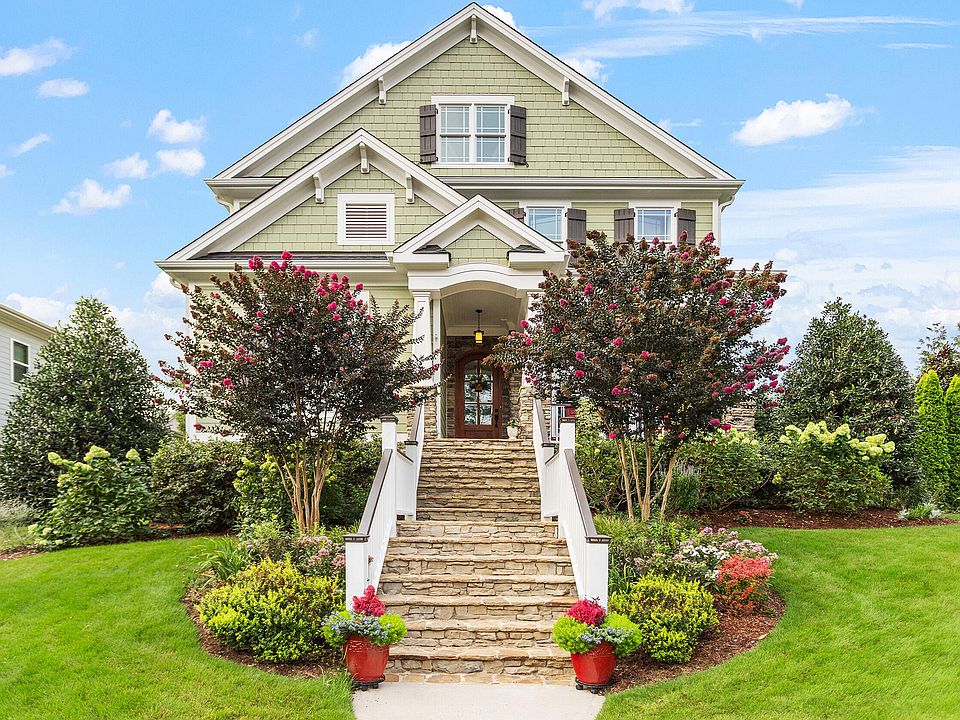 Spectacular home in sought-after Briar Chapel. 2-minute drive (or 8-minute stroll) to the Briar Club, a resort-style complex with clubhouse featuring fitness center, full-time activities director, indoor space for parties, outdoor cabana, playground, water park, and event lawn—all included in your HOA dues. This lovely one-owner home is a testament to the expert craftsmanship of custom-builder Homes by Dickerson. Site-finished hardwood floors on both levels (except tile in baths), detailed crown molding, tall wainscot, and graceful arched windows and doors give it its upscale look. The staircase is tucked away from the front door. The open concept floorplan flows seamlessly between kitchen, breakfast area, and family room. The family room has a see-thru gas-log fireplace shared with a delightful screened porch. The kitchen is a chef's delight with a large central island topped with soapstone, custom cabinets (some glass-front), and an apron-front ceramic farmhouse sink. The centerpiece of the kitchen is the 48'' Capital Culinarian self-cleaning range. It features two ovens (one is restaurant-sized rotisserie), four burners (25,000 BTU and 8,000 BTU), a built-in BBQ grill, and a stainless thermostatically controlled griddle plate. This is rated one of the world's best professional home ranges for performance and design. The primary suite is on the main level and features an amply-sized walk-in closet with built-in shelving and pocket doors, a luxurious bath with huge rectangular soaking tub, separate shower with custom tile, dual-sink vanity with lots of drawers and granite top, and convenient linen closet. The primary suite bath connects to the laundry. The powder room on the main level also has a linen closet. The home is sited on a corner lot with awesome privacy. The rear-entry garage provides access with few steps. There is a lovely covered breezeway between the garage and the home. The yard is professionally landscaped and is an absolute oasis, filled with flowering (and fruit) trees, vibrant shrubs, and native climate-acclimated annuals. There is a lush lawn as well. Dine al fresco on the lovely paver patio, or on the 12x14 screened porch. Upstairs in the home you will find a floored walk-in attic, two bedrooms, a full bath, and a bonus music studio. The music room is 14x17 and is sound proofed and acoustically tuned. The builder installed 6'' studs, staggered so that the drywall in one room does not touch the same studs as the drywall in adjacent rooms. The ceiling, walls, and floor were all specially engineered. Eight acoustic structures were constructed of red oak including five large floor-to-ceiling broad-spectrum acoustic absorbers filled with 6'' mineral wool and topped with beautiful textiles. The home has solar panels (on the garage roof) which provide much of the energy needed. More details about the solar panels, the range, and music room can be found in documents connected to this listing, or can be sent by request. Briar Chapel is conveniently located near Fearrington Village with its unique shops, boutique hotel, and gourmet restaurants. B. Everette Jordan Lake's recreational amenities including boat ramps, fishing, camping, swimming, and hiking, are within 15 miles. Downtown Chapel Hill, the University of North Carolina Chapel Hill campus, and UNC Hospital are all within 20 miles. Historic downtown Pittsboro is less than 20 minutes away.