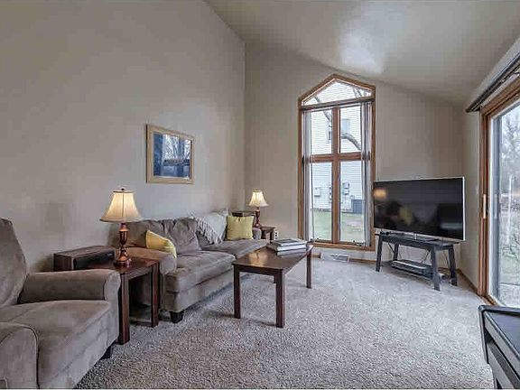 EXECUTIVE CONDO in East De Pere boasting over 1800sqft in pristine condition! 2-3bd, 2ba, w/2 car att garage. Features large great room w/cathedral ceilings with floor-to-ceiling windows & an open feeling, gas fireplace, and 2 sets of sliding doors lead to expansive outdoor patio. Upstairs features large loft area that could be used as 3rd bdrm, master suite w/bath and walk-in closet. Bonus room in basement. Active Radon system installed.