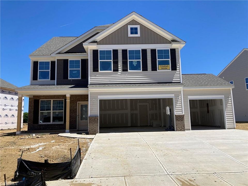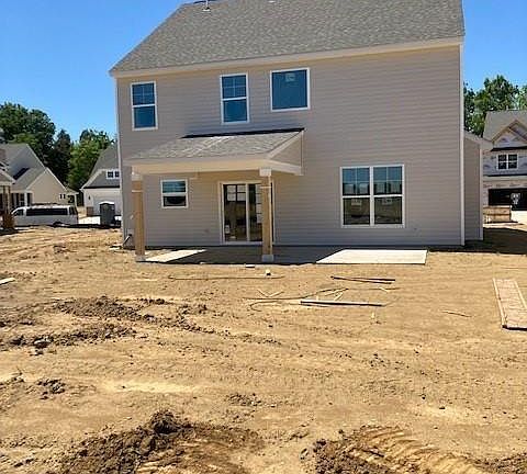 Drexel plan w/3car garage. 1st floor office, formal dining room w/bay window. Spacious open floor plan. Gas fireplace. Kitchen w/quartz countertops. Primary suite w/separate tub & tiled shower. Tile in all full baths. Vinyl plank flooring throughout 1st floor. Oak tread stairs. Oversized bedroom w/full bath on 3rd floor. Covered porch w/back patio.