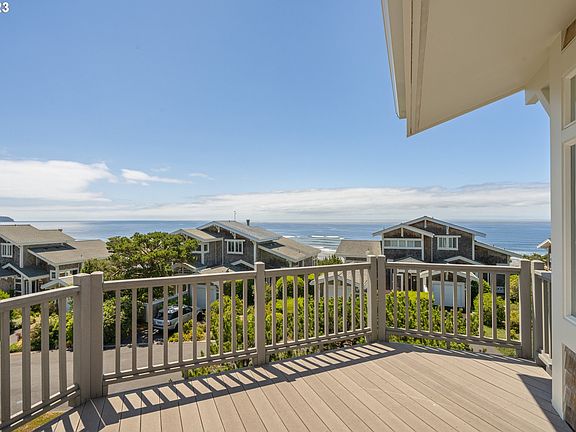 DRAMATIC & AWE INSPIRING whitewater ocean view with miles of breakers rolling onto sandy beach. Waves crash against majestic Cape Lookout's bluffs. Full view of Netarts Bay with the excitement of boating, crabbing, clamming, and wildlife activity constantly entertaining you and your guests. Open concept floorplan with 2 ensuite bdrms plus a large oceanview loft to use as 3rd bdrm. 3rd full bath off greatroom. Located less than 50 yards from the beach trail access and half a block to park/bocce ball court. Beautifully maintained, shows like a newer home! Kitchen island & wall of windows provides panoramic views for chefs & guests alike in the greatroom, perfectly designed for large gatherings. Owner will include quality furnishings with a good offer. Surround sound with speakers on deck. Extra large garage has room for boat and car!