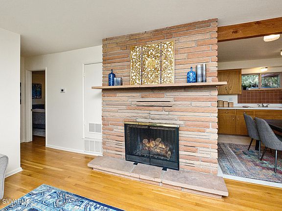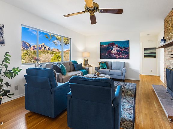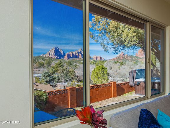 Uptown Sweet Retro 2 bedroom with a generous 3rd bonus room utilized currently as a bedroom offers delicious unobstructed views. This vintage classic has been updated with such improvements as New Furnace, replacement of all windows in the main home, new carpet in bonus room, 200 AMP electrical upgrade, and full hall bath update. Yet it retains the vintage charm of the 60's with hard wood oak flooring, center oak support beam, vintage kitchen, a stacked stone wood burning fireplace and a pink/turquoise tiled 60's shower -Groovy Baby! Carport was walled off to make a storage room with bonus storage and could be converted back to a carport if needed. For now, great area to store your bikes or hiking gear! Enjoy Sunsets when you slip into your 6 person hot tub after a long day of hiking! Enjoy the snow on the red rocks from your living room, bonus room and bedroom windows! Cozy up and listen to the fireplace crackle! Nestled in the hills of uptown this home offers quick closeness to myriad shopping, restaurants, Sedona hertiage museum, and art center. So go totally green and keep the car at home! Main home offers 1191 square feet and 3rd bonus room adds another 231 square feet combined to make 1422 square feet of living space. High perimeter side fencing offers privacy from neighboring properties and with unblock able Red Rock Views out your front and short term rentals allowed , this is a sweet delight!